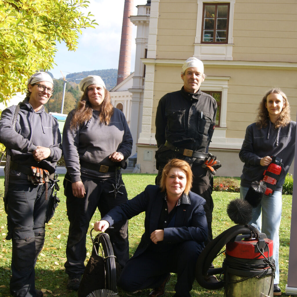 Foto: v.l.n.r.: Hüblauer Leonhard (Rauchfangkehrermeister), Tatzreiter Julian (Geselle), Wurzenberger Silke (Rauchfangkehrermeisterin), Müller Ingo (Geselle), Friedl Jürgen (Geselle), Aichberger Tobias (Geselle)